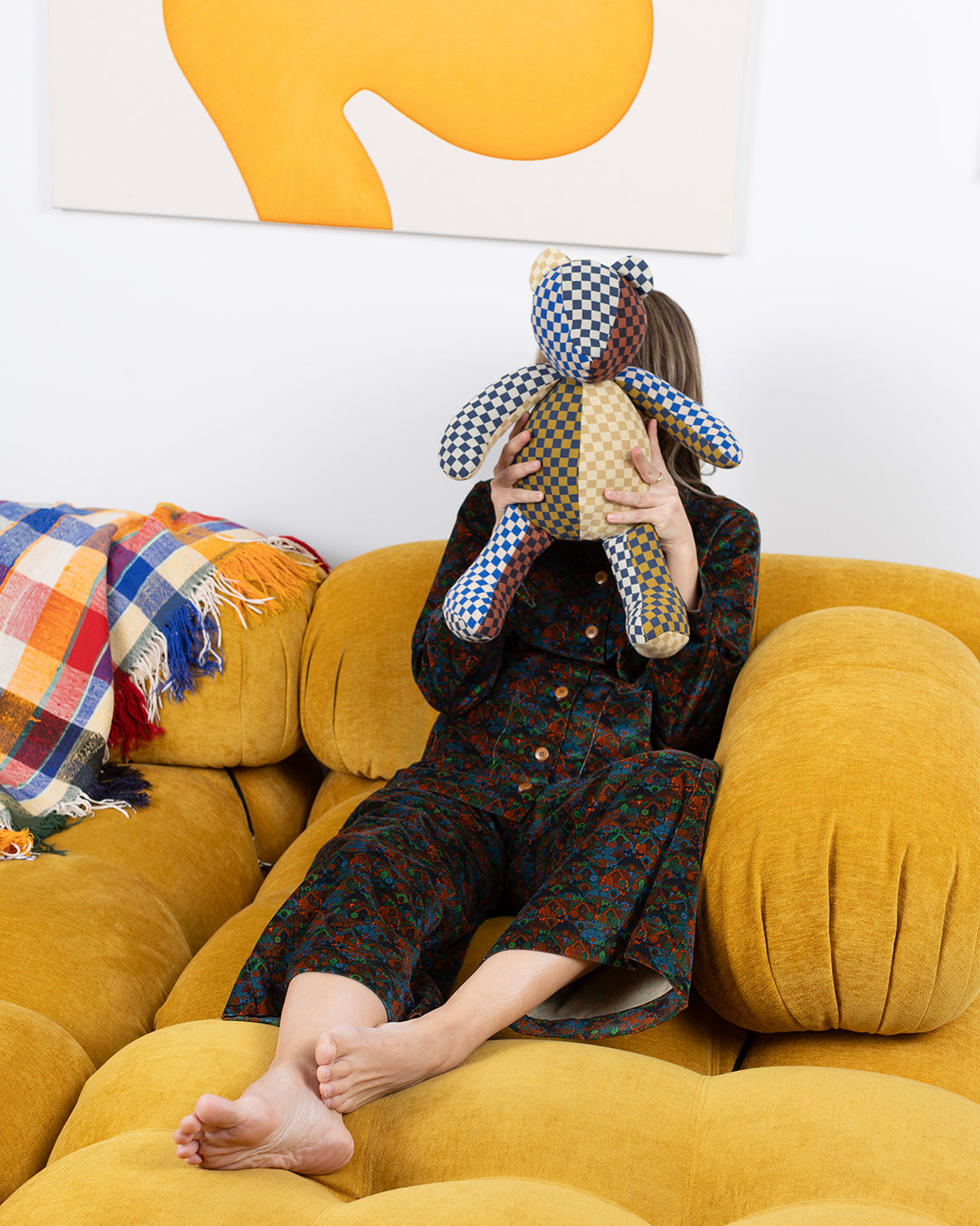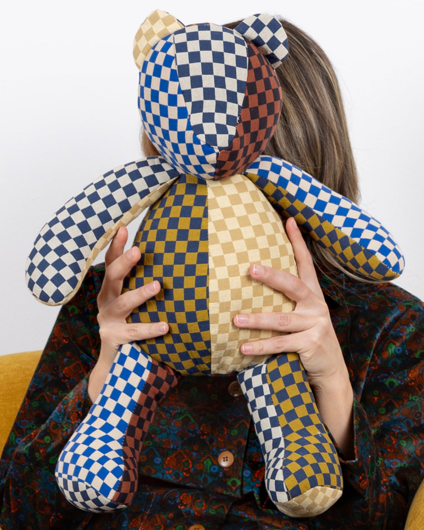 Each of these limited-edition bears is lovingly handmade by Ilana Kohn herself, using textile scraps from Ilana Kohn & Samet. Every bear is unique, a truly one-of-a-kind beast crafted with care and intention.